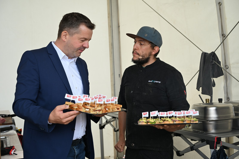 Zwischen Bauernmarkt und Schauküche füllten sich Körbe und Taschen mit Gemüse, Käse und Spezialitäten. Währenddessen wurde beim Schaukochen gezeigt, wie sich aus den Zutaten kleine Kostproben zaubern lassen.